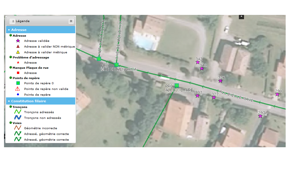 - Qualité des données : fonction de contrôles sur la qualité des données ( doublons sur les numéros, parité des points au regard du sens de numérotation de la voie.